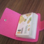 фо то 1 - на 24 карты, подходят для банковских карт и визиток размером 9,5 см х 6 см, материал очень похож на сукно, на кнопке