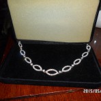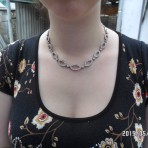 Колье из качественной бижутерии, не чернеет, одевала на выпускной. Длина изделия 42см, как раз чуть ниже косточки, ещё есть дополнительный кусочек на 8см.