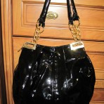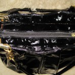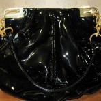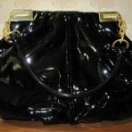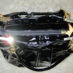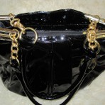 Сумка черная, лак. Довольно эластичная, не жесткая, не склонная к заломам.