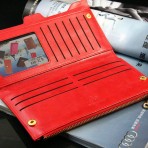 Кошелёк имеет множество отделений (для купюр, для мелочи, для карточек и визиток, а также др. потайные кармашки))