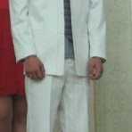 Светлый костюм размер 44-46, воротник - стойка. Одет всего один раз