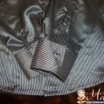Очень нарядная атласная мужская рубашка, размер L, цвет - серебристо-серый, в тонкую черную полосочку. состояние новой. замеры : рукав от плеча до низа манжета - 66 см., от подмышки до низа - 41 см, по спине от плеча - 73 см, спина (на уровне лопаток) - 45, на уровне талии-52 см.