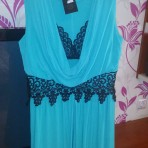 Продаю праздничное платье. Новое. С биркой. Бирюзового цвета. Покупала себе по интернету, но мне не подошло по цвету ( отличалось от картинки, на картинке было голубое,а мне с семьей в один тон нужно было одеться). Платье красивое, мягкое, легкое. Красивое кружево. Внутри короткое, сверху длинное. Двойное.Размер L, соответствует. Не маломерит и не большемерит. Замеры по просьбе сделаю.