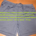 Фирменные плавки-шорты GRANE (Германия), р. S(36/38) на резинке+затяжка, в отличном состоянии. Сзади функциональный кармашек на молнии. Длина - 32 см. Цена - 70 грн.