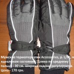 Мужские термоперчатки Accessories, р. L/XL, в идеальном состоянии. Утеплитель: Thinsulate. Длина по среднему пальцу - 30 см. Ширина ладони регулируется. Цена - 170 грн.