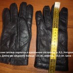 Мужские теплые перчатки в идеальном состоянии, р. 8,5. Натуральная кожа. Длина по среднему пальцу - 23 см, ширина - 10,5 см. Цена - 250 грн.