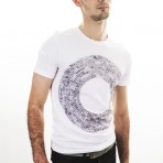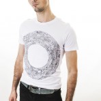 Детали: мужская футболка с принтом спереди, круглый вырез, короткий рукав, отделка на рукаве.