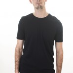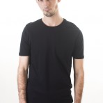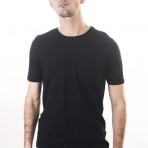 Детали: мужская футболка черная с карманом спереди, круглый вырез, короткий рукав.