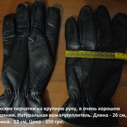 Мужские перчатки на крупную руку, в очень хорошем состоянии. Натуральная кожа+утеплитель. Длина - 26 см, ширина- 12 см. Цена - 350 грн.