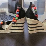 босоножки на танкетке ткань замш,в отличном состоянии,размер написан 38,но у меня нога 39(25-25,5см)большимерят