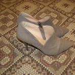 Серый, замшевые туфли осень-весна. 37 размер, полнота F. Покупались в Raca. Есть коробка. Одела один раз и поняла, что они мне маловаты, т.к. у меня 37,5 размер и носить их не смогу. Отличнейшее состо...