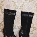 Продаю красивые зимние женские сапоги (кожа, замш, натуральный мех) черного цвета. Фирма Alex Line. Размер 38. На узкое голенище. Каблук 10 см. Почти новые, одела раз 5 на выход.