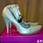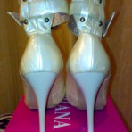 Светлые туфли на высоком каблуке ( высота каблука – 10 см). Платформочка под пальцами. Не сбита набойка. Очень устойчивый , удобный каблук.. Размер , указан на туфлях – 40. цена – 10 грн.