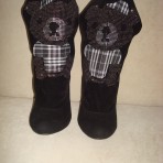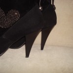 обувь на длинную узкую ножку,замш.размер 39.один раз одела,прошлась с магазина по нашим"ровным" дорожкам,оказались узкими для меня и великоваты,вернуть не смогла,т.к.родные набойки чуть стерлись.покупала за 400грн