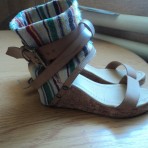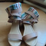 Отличные босоножки на лето, но к сожалению мне не подходят, размер 38-39, на ножку 25-25,5см, одела 1 раз, чуть сбила носки(виноваты камни), но заметно только на фото, сверху - вниз вообще не видно, отдам за символическую сумму,