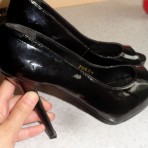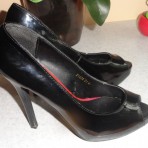 Черные лаковые туфли , сток. Смотрятся очень элегантно и сексуально ,размер 37 ,на узкую ногу и есть вероятность что туфли маломерки, так как на мой 37 размер плотно сидят.Высота танкетки 1,5 см , высота каблука 12 см 0934944624