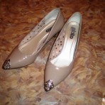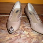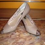 Туфли лодочки, при покупке были без металлических деталек на носочке - мне в мастерской их туда приделали, по моей просьбе - хотелось украсить их как-то. На ноге выглядят аккуратно, носочек не очень длинный. Если заинтересовались, то пишите, возможен торг.