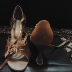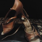Туфли для бально-спортивных танцев, коричнево-золотистого цвета; б.у., размер 38-39(25), нету дефектов, носились 3 раза, как новые. Набойки в придачу (новые)