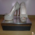 Туфельки на шпильке. Высока каблучка 12 см. платформа. Одевались один раз, поэтому состояние отличное. Цвет кофе + молоко. Очень удобная колодка. Размер 37