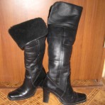 кожаные ботфорты , мех полностью от стельки до верха. очень теплые. одевала пару раз.
