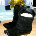 сапожки натуральный замш на меху удобные. состояние на 4. очень удобная танкетка. теплые. не скользкие. зима. на размеры 39-40. на широкую голень. смотрите у меня в лотах их а также много вещей модных...