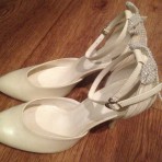 Продаю свадебные туфли в отличном состоянии. Цвет - шампань. Каблук 11 см. Размер 37 Носки не сбиты, набойки на месте ! Покупала за 500 - продаю за 200 ( обувала один раз)