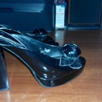 Черные лаковые туфли с открытой пяткой.Носила аккуратно и совсем недолго.Размер 37 - 38.