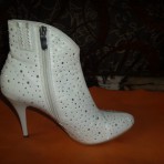 Белые, свадебные полусапожки, одевались один раз на свадьбу почти новые, все в переливающихся камешках. Очень удобный подъем, в них как босиком) 38-39 размер, по стельке - 27 см.