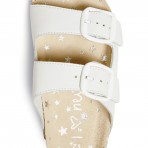 Pretty double-strap sandal with branded cork footbed.