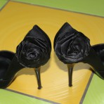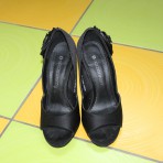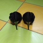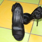 Размер указан 34, но стелька 22,5, немного подертые каблуки, но при ходьбе не видно из-за черного цвета, а так обуты 2 раза.
