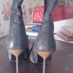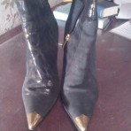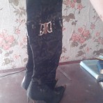 7-9. Сапоги (ботфорты) осенние 38 размер, состояние видно на фото. Подойдут на ногу с широкой голенью. Все целое, не порванное, в хорошем состоянии. Из недостатков - немного стерлась позолота в "леопардовом" рисунке сапог. Длина чулка без каблука по заднему шву - 47 см.