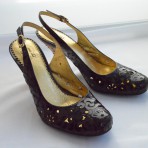 Босоножки коричневые лаковые, на каблучках "стразики", в отличном состоянии. Длина по стельке 25,5 см, высота каблука 9 см.