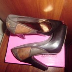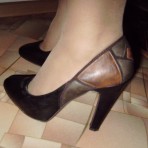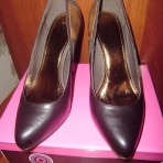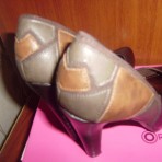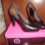 Удобные, красывые туфли шоколадного цвета, сзади украшены вставками 3цветов, каблук удобный, устойчивый