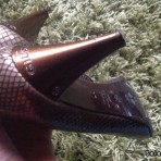 Замечательные и оригинальные в стиле Zara , но фирма дороже Giovanni Giusti оригинал Италия, можно посмотреть на официальном сайте фирмы. одевались один раз и то в машину! Есть маленькая зацепка на каблуке на 3 фото видно, но она вообще не видна! Состояние новых! Очень стойкие и удобные! Натуральная кожа внутри и снаружи. Верх кожа рептилии с переходом цвета омбре. Стелька до конца самого носика 25,2 см на ножку до 24 см . Каблук 7,5 см . Цена за такую вещь символическая!