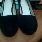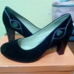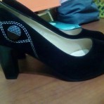Туфли черные, искусственный замш. Есть узор. 37 размер на узенькую ножку. Устойчивый каблук 7см. Круглый носочек. Обувались один раз на фотосессию. По стельке 24 см. Набойка целая. Есть малозаметные п...