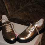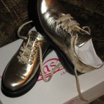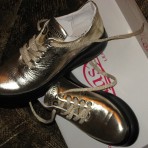Модные ботинки на шнурках золотые на черной подошве из натуральной кожи. 36 р-р. По стельке - 23,5. Заказывала себе, но не подошел размер.