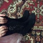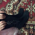 Зимние сапоги на небольшом каблуке утеплены цигейкой. В хорошем состоянии. Украшены камнями с боку