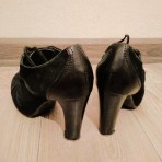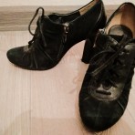 Продаю кожаные замшевые ботильоны черного цвета с кожаными вставками на шнурках и змейке. Высота каблука 9 см. Размер 35, но носила на 36 без проблем.