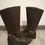 Продаю демисезонные сапоги из искусственной кожи на низком ходу. Цвет капучино. Размер 6, носила на 36 размер. Внутри ткань. Сзади в голенище вшита резинка. Высота сапога от каблука 30 см. Полуобхват голенища вверху 18,5см.