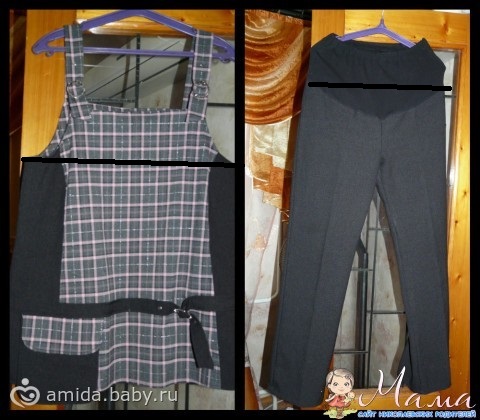 р 48-50, рост 165-170, брюки с высокой регулируемой резинкой пару раз бу, сарафан с молниями по бокам для увеличения объёма, новый тёплый и красивый.