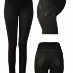 Леггинсы из трикотажной ткани. Впереди карман-обманка, сзади накладные карманы, которые украшены декоративной отделкой из сатина. Высокий бандажный пояс, животик регулируется перфорированной резиночной!