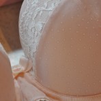 Внешняя часть бюстгальтера украшена белоснежным кружевом, что в сочетании с нежно-розовым цветом ткани в еле заметный горошек, делает модель необыкновенно лёгкой, романтичной и утончённой.