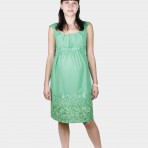 Летний сарафан на широких бретелях, спинка собрана на резинку. Длина сарафана "по колено", красивая отделка прошвой по подолу.