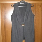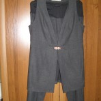 Размер полномерный. Брюки подойдут как на маленький живот так и на уже огромный. Размер ближе к 50, но думаю и 46 можно мерить. Брюки укорочены по середину икры (по-моему). Можно примерить. Жилетку, почти не носила у меня грудь маленькая и она смотрелась не очень.