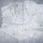 очень красивое и нежное платье. размер 44-48, сзади змейка и шнуровка. в подарок кольца (кринолин) и перчатки. торг уместен)