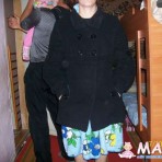 Хорошенькое пальтишко на тоненьком синтепоне.Можно носить зимой когда не очень холодно.Пятен никаких нет,на фото искажения фотика.