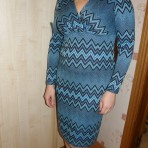 Платье трикотажное с эффектом запаха на груди. Размер 48-50. ОБ - 96-100 см., ОБ - 100-104 см., длина по спинке 100 см. В отличном состоянии.