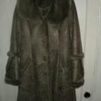 Дубленка искусственная, но очень теплая и отлично смотрится. Размер 44/46. Одета всего пару раз. (немного не угадала с размером - на груди слишком плотно). Цвет очень приятный, ближе к оливковому. Интересные узоры на дубленке и пуговицах.