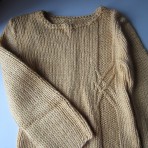 Крупная вязка, очень теплый, не длинный. Состояние нового. Цвет на фото немного отличается (свитер горчично-желтый).
