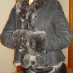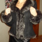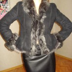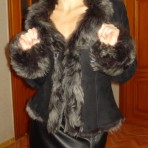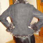 Дубленка женская, замшевая на длинном натуральном меху, короткая, размер 46. Черного цвета, очень теплая.